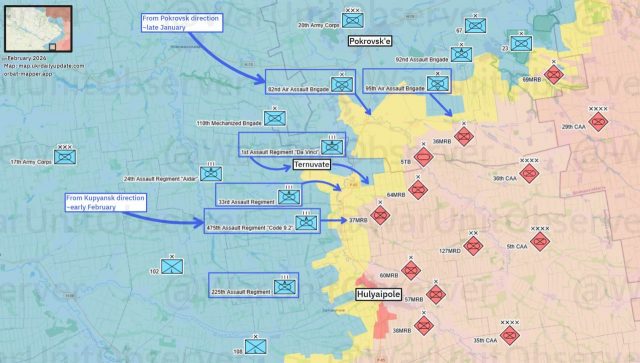 Na lewym skrzydle tej głębokiej penetracji ukraińskim grupom szturmowym udało się przebić z nowo zdobytej wsi Sosnówka na linię wsi bronionych przez Rosjan Berezowo-Ternowe. Po okopaniu się w północnej części Ternowego i silnym ataku artylerią oraz dronami FPV praktycznie na każdy budynek w południowej części wsi siły ukraińskie rozbiły rosyjską obronę i posunęły się dalej na południe, przejmując pełną kontrolę nad tą miejscowością. Stamtąd próbują nacierać na zachód w kierunku wsi Bieriezowa i na południe w kierunku Zaporoża. Póki co bez większych sukcesów.