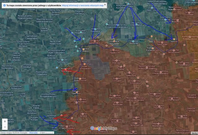 Nie inaczej jest z wygasającą właśnie ukraińską zimową kontrofensywą roku 2026, zwaną od nazwiska głównodowodzącego armią ukraińską, który przejął osobiście jej dowodzenie, ofensywą Syrskiego. Po raz pierwszy jednak od 4 lat, aby móc szerzyć propagandową narrację odpowiednią do efektu działań, strona ukraińska zastosowała pełne „przykrycie informacyjne”, bez tak charakterystycznych dla jej propagandy wojennej filmów z dronów i z lądu dokumentujących sukcesy odbicia z rąk rosyjskich kolejnych miejscowości. Otrzymaliśmy po 3 tygodniach jej trwania skondensowaną informację generała Syrskiego, błyskawicznie powieloną przez kanały masowej komunikacji nadzorowane przez 72 Centrum Operacji Psychologicznych i Informacyjnych Sił Specjalnych Ukrainy, o wielkim sukcesie ukraińskim, odbiciu 400 km2 terytorium i 7 miejscowości na pograniczu obwodów zaporoskiego i dniepropietrowskiego.