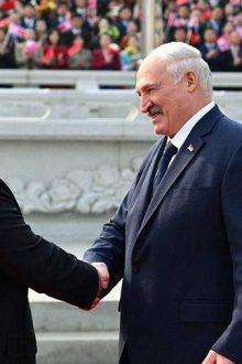 Koreańska Republika Ludowo-Demokratyczna (KRLD). Przywódca Korei Północnej Kim Dzong Un z radością przyjął prezydenta Białorusi Aleksandra Łukaszenkę – podały północnokoreańskie media. Podczas ceremonii powitalnej białoruski gość złożył hołd w Pałacu Słońca Kumsusan, mauzoleum zmarłych liderów Kim Ir Sena i Kim Dzong Ila. Prezydent Łukaszenka złożył tam nie tylko własny wieniec, ale również bukiet przesłany specjalnie przez prezydenta Federacji Rosyjskiej Władimira Putina. Przywódca KRLD Kim Dzong Un osobiście przedstawił gościowi czołowych dygnitarzy Partii Pracy Korei, a Łukaszenka w asyście północnokoreańskiego lidera dokonał przeglądu gwardii i kawalerii honorowej Koreańskiej Armii Ludowej. Przy akompaniamencie 21 salw honorowych odegrano następnie hymny narodowe obu państw.