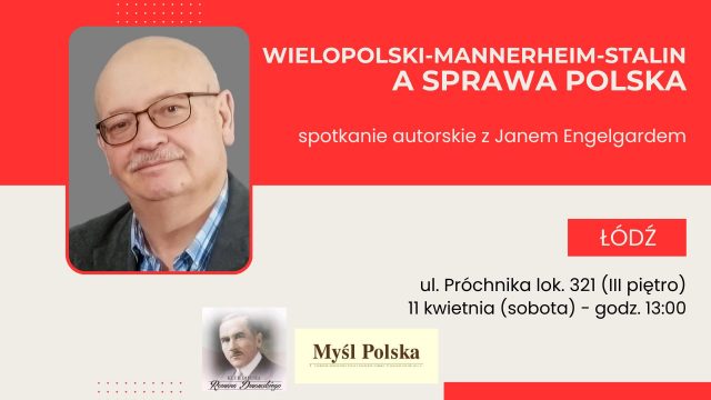 Klub Myśli Polskiej w Łodzi i Klub Imienia Romana Dmowskiego zapraszają na spotkanie autorskie z red. Janem Engelgardem, promujące książkę „Wielopolski-Mannerheim-Stalin a sprawa polska”.